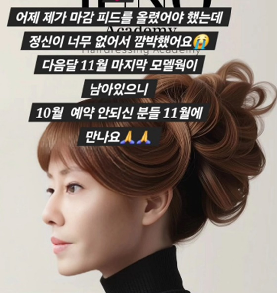 이어 "다음 달 11월 마지막 모델웍이 남아있으니 10월 예약 안 되신 분들 11월에 만나자"고 덧붙였다.