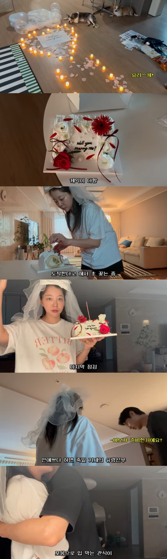 미리 주문해놓은 케이크에는 'will you marry me?'이라는 프러포즈 멘트가 적혀 있어 눈길을 끌었다.