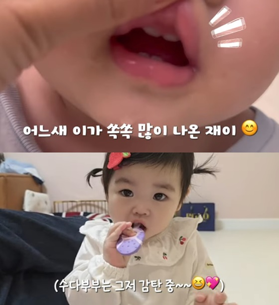 김다예는 재이의 아랫니와 윗니를 공개하기도 했다. 그는 "재이 이렇게 아랫니도 잘 나고 윗니도 나고 있다"고 알렸다.