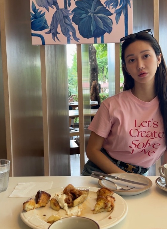 공개된 사진에는 한 카페에서 디저트와 커피를 즐긴 한그루의 모습이 담겼다.
