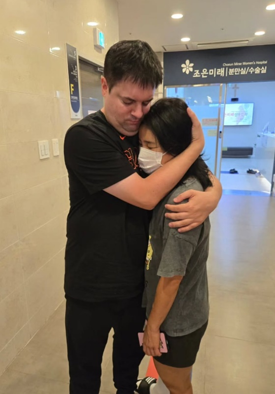 공개된 사진에는 수술실 앞에서 독일인 남편 품에 안겨 있는 김혜선의 모습이 담겼다.