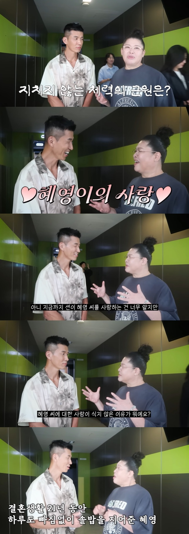 영상 속 이영자는 션과 녹화장에서 만나 "지치지 않는 체력은 어떻게 해야 나오냐"라고 물었다. 이에 션은 "혜영이의 사랑?"이라고 너스레를 떨며 또 한번 '사랑꾼' 면모를 과시했다.