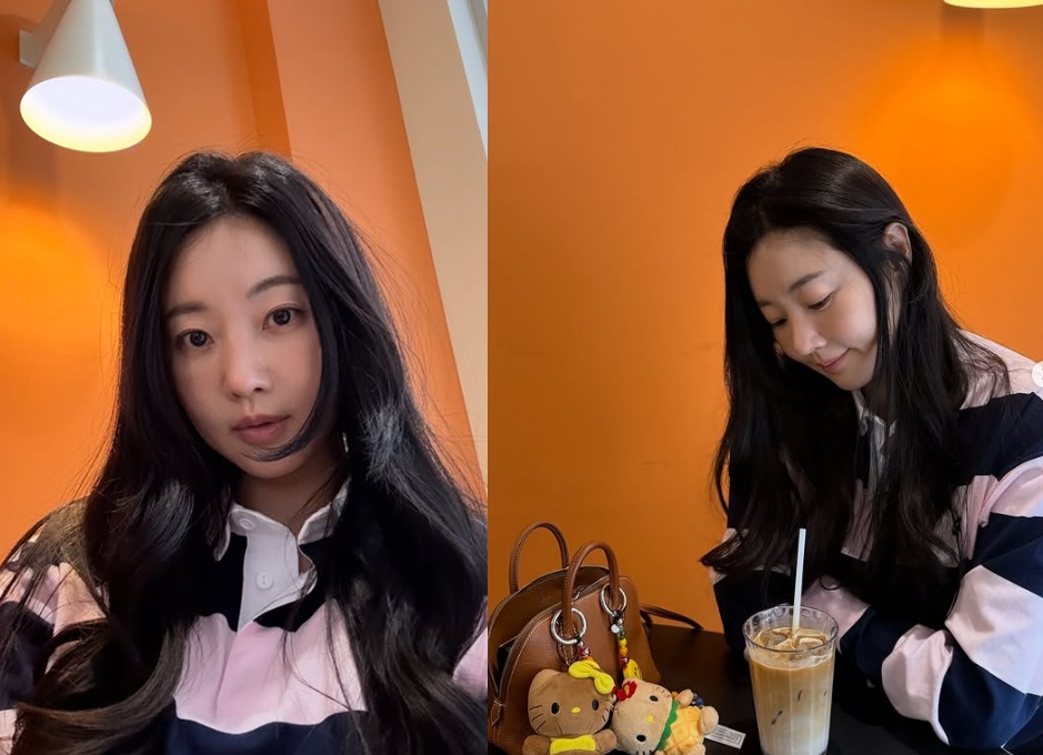 사진 속 김사랑은 카페에 앉아 커피와 가방을 올려놓고 포즈를 취하며 세월을 거스르는 청순 미모를 뽐내고 있다.