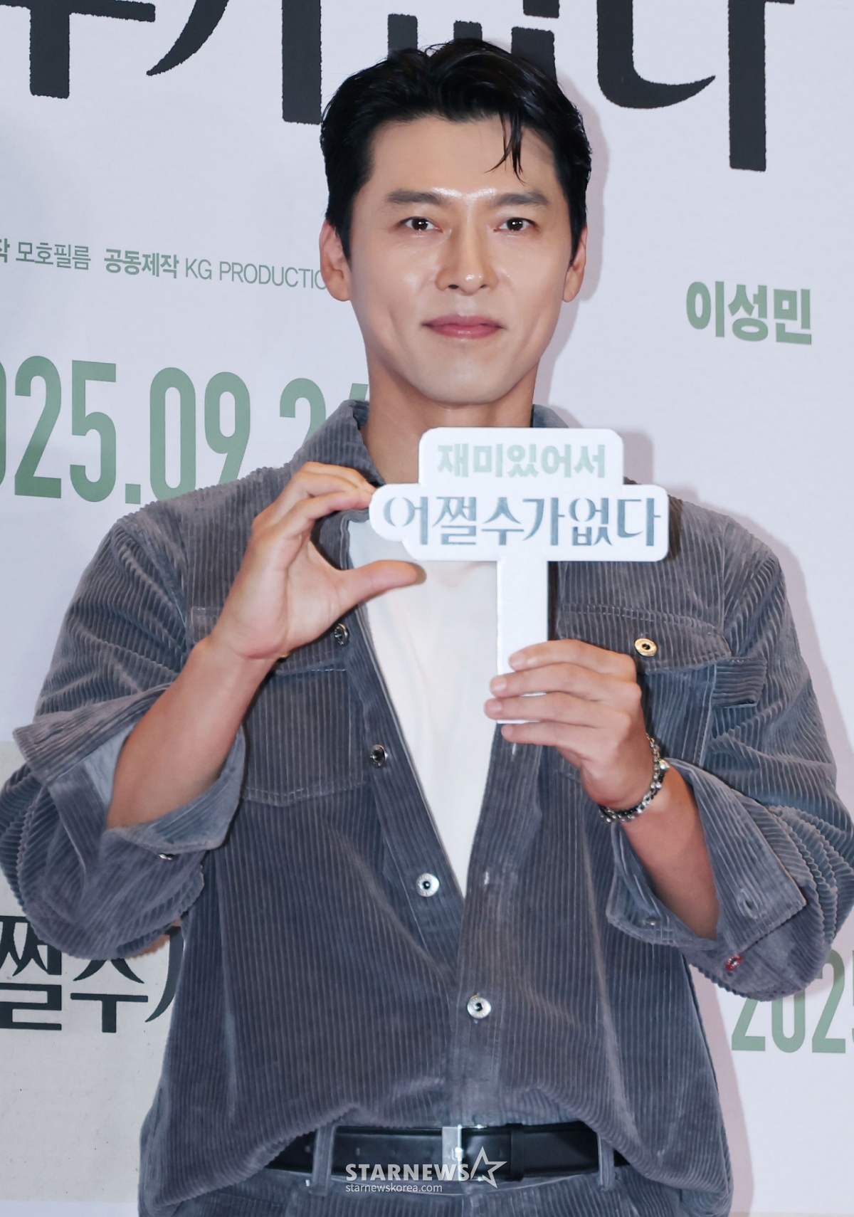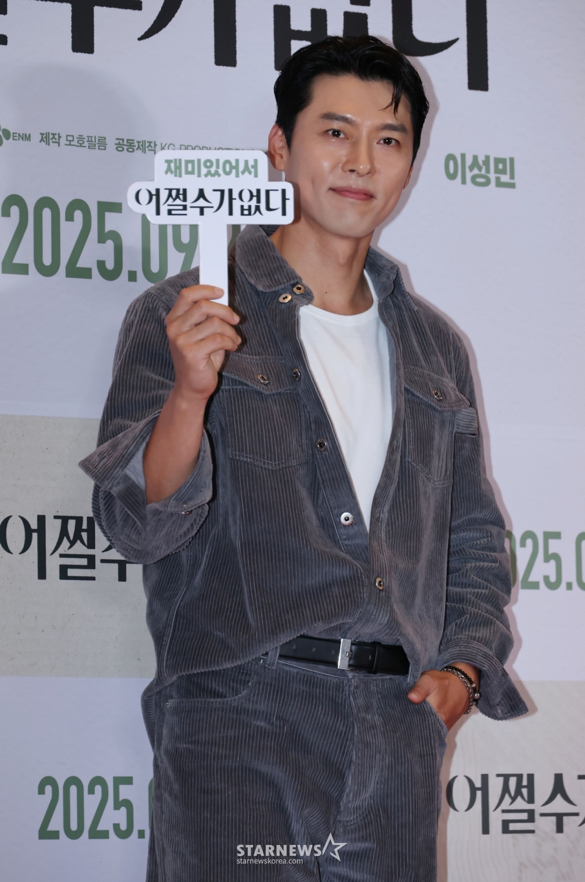 배우 현빈이 22일 오후 서울 CGV용산아이파크몰에서 진행된 영화 '어쩔수가 없다'(감독 박찬욱) VIP시사회에 참석해 포즈를 취하고 있다. '다 이루었다'고 느낄 만큼 삶이 만족스러웠던 회사원 만수(이병헌)가 덜컥 해고된 후, 아내와 두 자식을 지키기 위해, 어렵게 장만한 집을 지켜내기 위해, 재취업을 향한 자신만의 전쟁을 준비하며 벌어지는 이야기를 그린 작품 '어쩔수가없다'는 오는 24일 개봉한다. /2025.09.22 /사진=이동훈 photoguy@