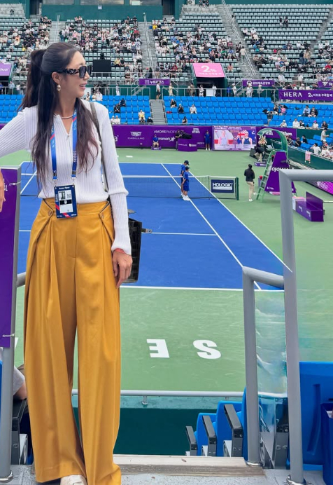전미라는 22일 서울 올림픽공원 테니스 경기장에서 찍은 사진을 공개했다.