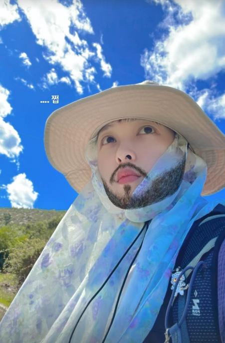 사진 속 김보라는 캐주얼 차림에 햇빛 가리개 모자를 쓰고 자연과 함께하는 모습이었다. 그는 자신의 얼굴에 수염 스티커를 붙이고 "쩝"이라며 너스레를 떨었다.