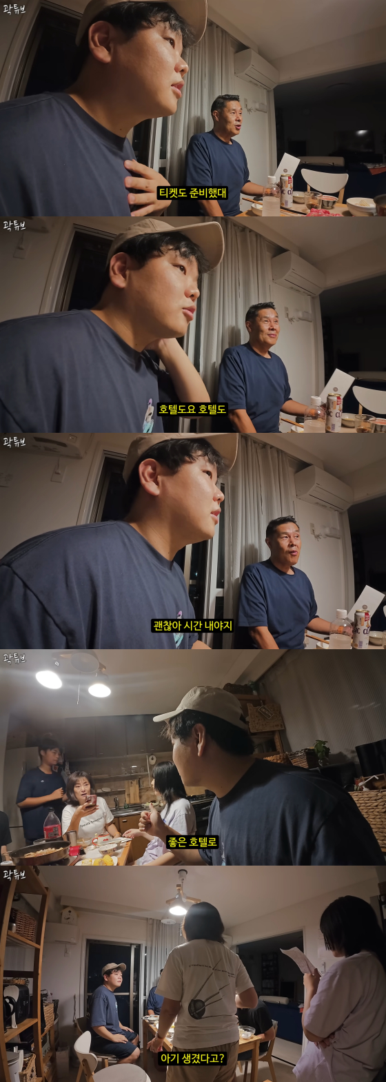 곽튜브는 "비행기 표를 선물하겠다. 호텔도 예약했다. 엄청 좋은 호텔이다"고 밝혀 하숙집 식구들을 감동하게 했다.