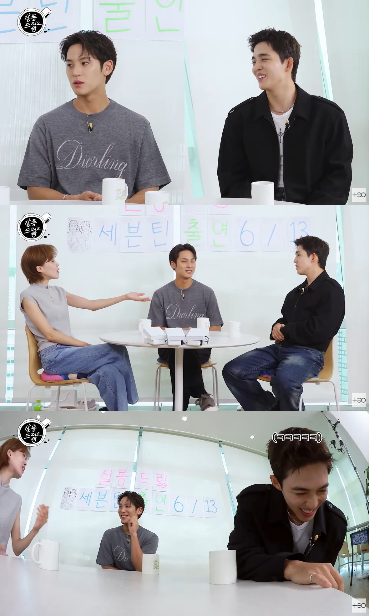 장도연은 "두 분은 좀 낯가리는 편이냐. 난 좀 그렇다"라고 물었다. 에스쿱스는 "약간 그런 거 같다"라면서도 "근데 승관이랑 도겸이 나온 편을 봤는데 편해 보이더라. 그래서 좀 서운하다"고 말해 웃음을 자아냈다.