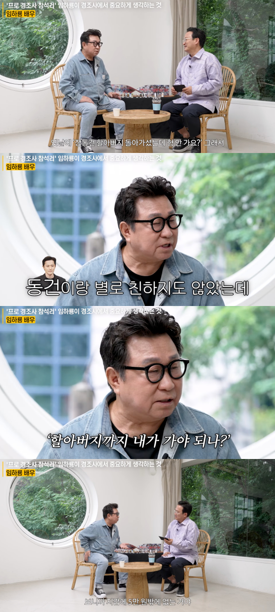 임하룡은 그러면서도 "그래도 성의를 표시하는 게 좋다"고 강조하며 "옛날에 누가 나한테 배우 장동건 할아버지가 돌아가셨는데 (조문을) 안 가냐더라"고 장동건과의 일화를 떠올렸다.