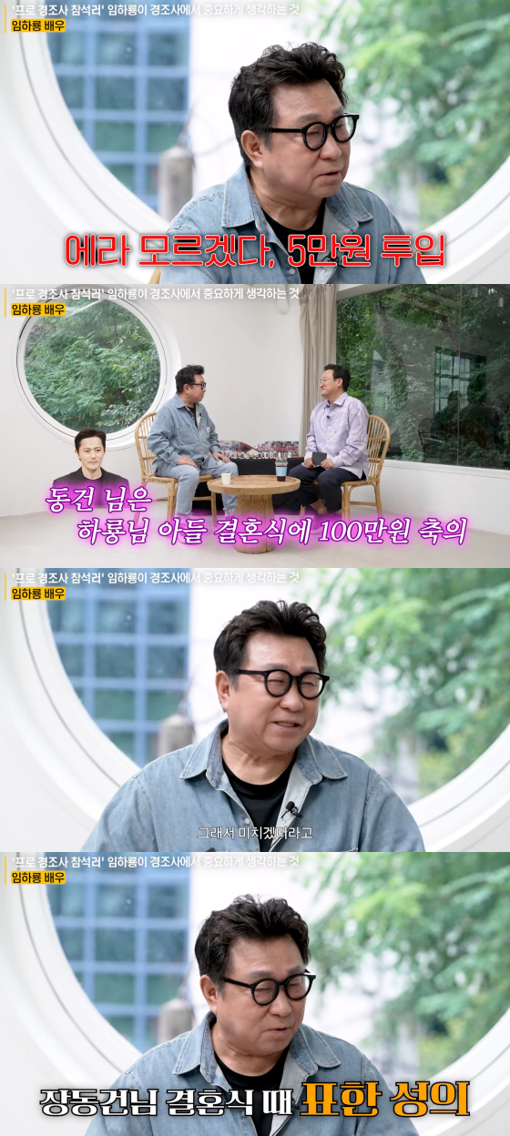 임하룡은 "계산까진 안 해봤는데 사람을 많이 알수록 축의금은 줄어든다"고 답해 놀라움을 자아냈다.