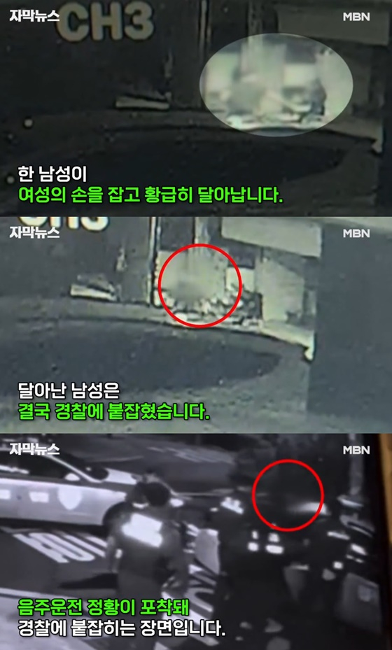 23일 MBN이 단독 보도한 CCTV 영상에는 A씨가 여성의 손을 잡고 황급히 달아나는 장면이 담겼다.