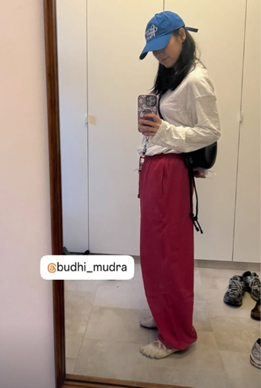 이효리는 26일 자신의 개인 계정에 자신의 집 현관에서 찍은 거울 셀카를 공개했다. 사진 속 이효리는 외출 준비 중인 보습. 화이트 티셔츠레 빨간색 바지를 매치한 이효리는 파란색 모자를 썼다. 여기에 유행은 선두 중인 발가락 신발을 신어 눈길을 끈다.