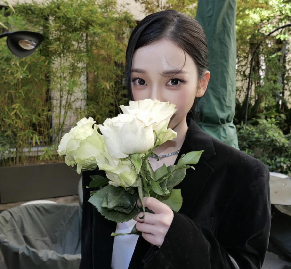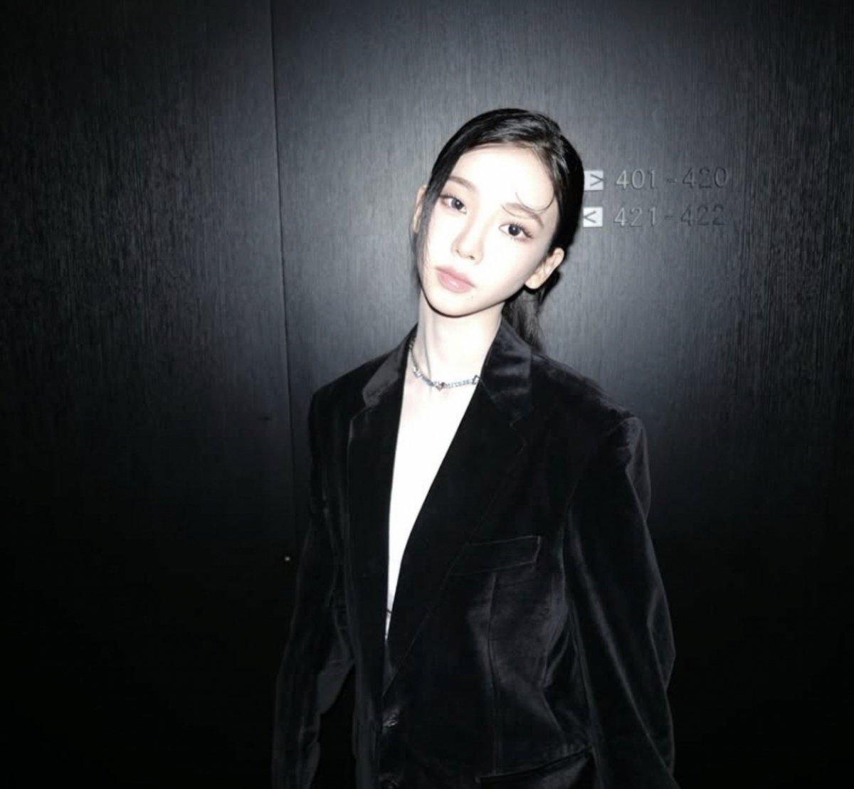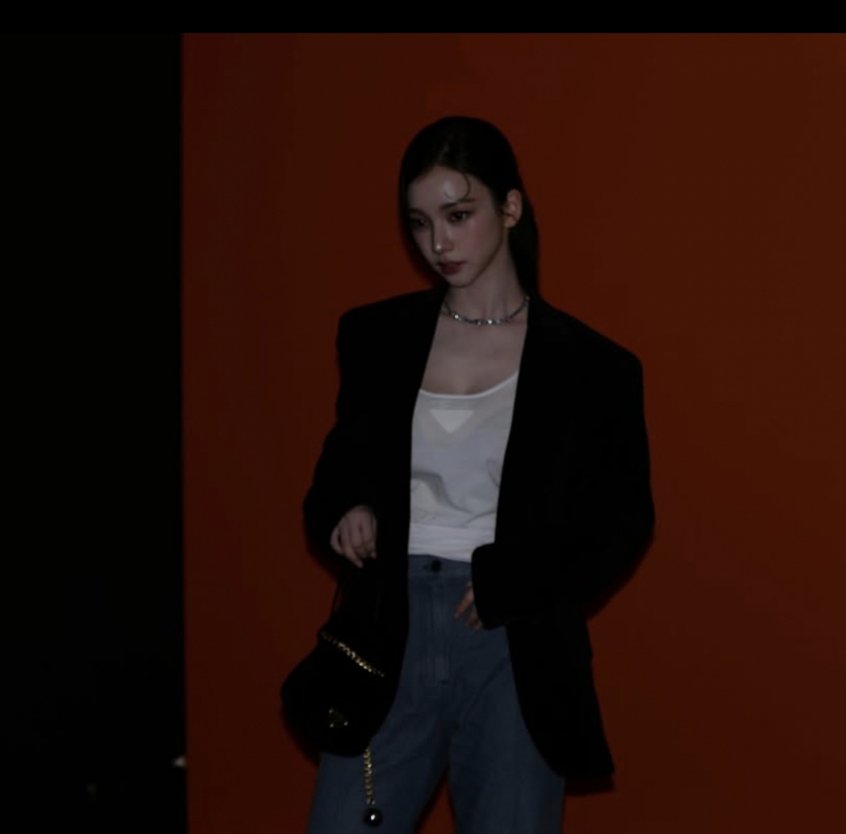 공개된 사진 속 카리나는 블랙 재킷과 데님을 매치하고, 화려한 네크리스를 더해 럭셔리 무드를 완성했다.