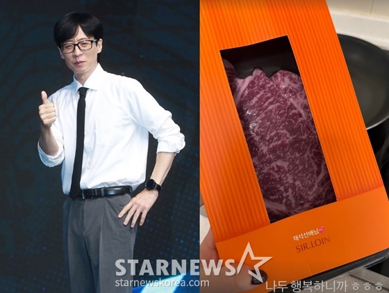 공개된 사진에는 유재석이 추석을 맞아 선물한 고급 한우 세트 모습이 담겼다.