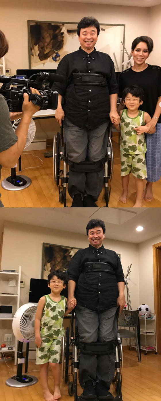 이와 함께 공개된 영상에는 휠체어에 앉아 있던 강원래가 벌떡 일어나 아내 김송, 아들 강선 군과 포옹하는 모습이 담겼다. 해당 영상은 인공지능(AI)로 만든 것이다.