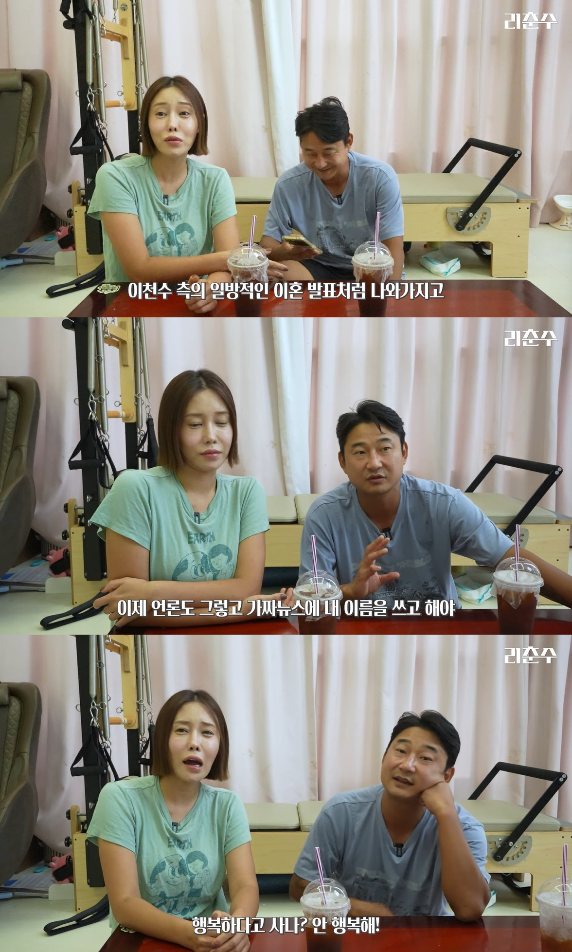 이날 심하은은 "(이혼설 관련 영상)그걸 보고서 오빠한테 전화했는데 안 받았다. 화나는 게 합의 이혼이 아니라 이천수 측 일방적 이혼 발표로 나왔다"라고 하자, 이천수는 "내가 그걸 축구 클럽하는 애한테 물어봤더니 '가짜뉴스'라고 했다"라고 했다.