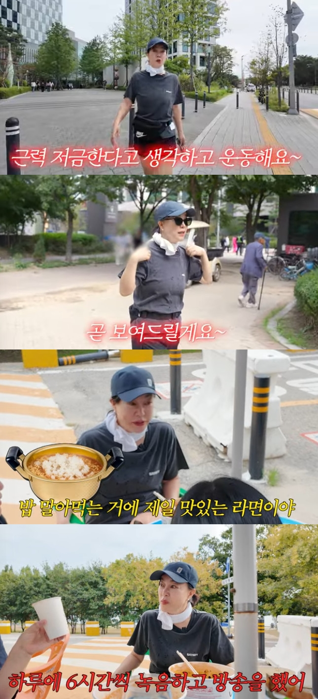 한강에서 라면을 먹은 최화정은 "이번 촬영을 마지막으로 식단 좀 해야겠다. 몇 년 전에 5일 동안 물만 먹고 단식했다. 굶는다는 생각을 안 하고 보약 먹는다고 생각한다. 마음가짐이 중요한 게 그냥 굶는다고 생각하면 인생이 힘들다"고 말했다.