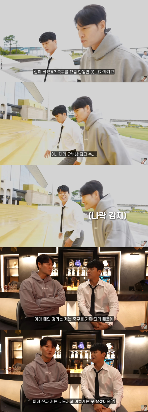 대회장에 도착한 그는 "축구를 한동안 못 나갔다. 제가 유부남 되고 축구를"이라고 말하던 중 입을 닫았다. 자막에는 '나락 감지'라고 적혀 웃음을 자아냈다.
