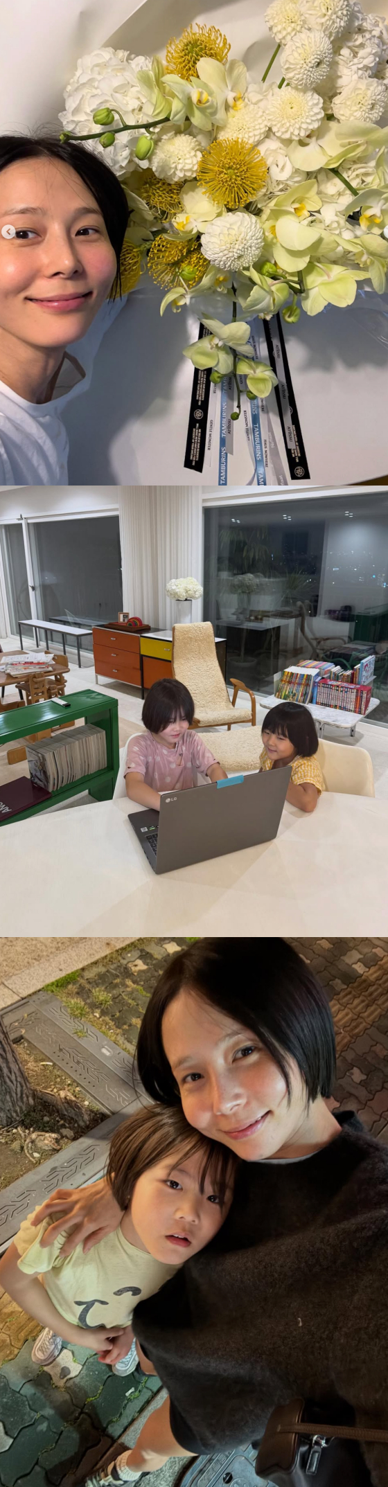 아들 이준, 신우의 모습도 공개했다. 아이들은 노트북 앞에 앉아 미소를 짓고 있다. 김나영과 함께 산책하는 모습도 담겼다.