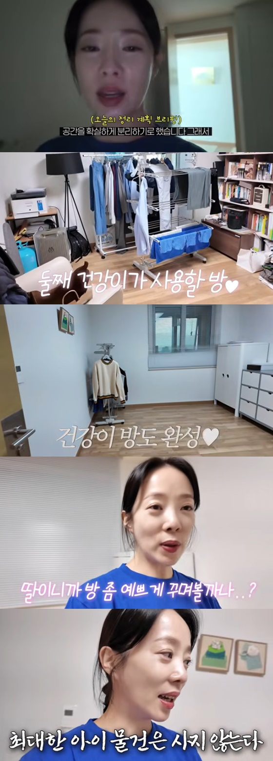 그는 둘째 방을 공개하며 "둘째를 낳기 전에 다짐한 게 있다. 여자애니까 예쁜 옷장이니까 여자 방을 꾸며볼까 했다"며 "근데 사실은 이 집에서 얼마나 살게 될지 모르겠더라. 또 첫째를 키워보니까 내 마음대로 안 되더라. 그래서 최대한 아이 물건을 사지 않으려고 한다"고 밝혔다.