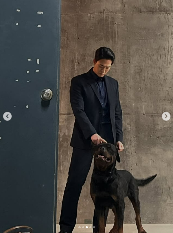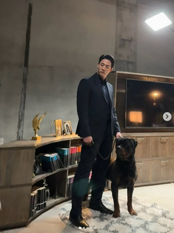 사진 속 차현승은 지난달 24일 방송을 시작한 드라맥스 '단죄' 촬영장에서 올블랙 슈트를 입고 남다른 피지컬을 뽐내고 있는 모습. 극중 차현승은 거대 보이스피싱 조직 '일성파' 수장 마석구 역을 맡은 지승현의 최측근 수행비서 유승 역을 연기하고 있다.