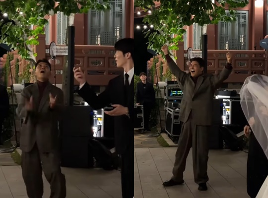 공개된 사진 속 전현무는 적재와 허송연의 결혼식에서 신랑이 던지는 부토니에를 받고 기뻐하고 있다. 전현무는 부토니에를 받고 두 손을 번쩍 들며 결혼식에 대한 의지를 다지는 듯한 모습으로 웃음을 자아낸다.