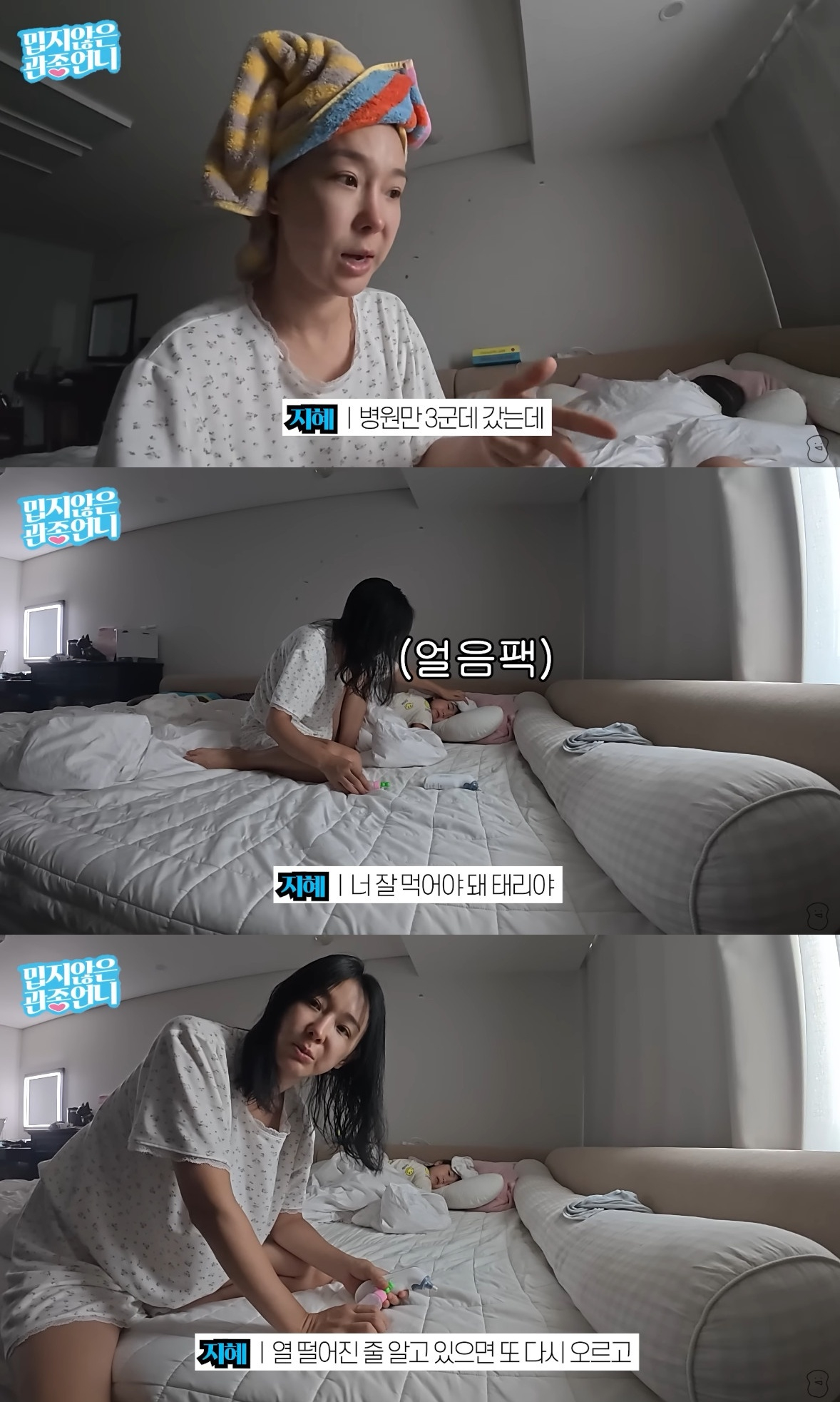 지난 2일 유튜브 채널 '밉지 않은 관종언니'에서는 "딸 태리 원인불명 고열에 온 가족 비상 걸린 이지혜 가족"란 제목의 영상이 게재됐다.