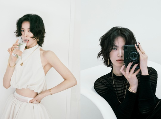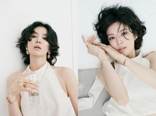사진 속 송혜교는 블랙 단발펌 헤어스타일에 누드톤 립스틱으로 소년미와 청순함이 동시에 느껴지는 미모를 자랑한다. 송혜교만이 소화 가능한 메이크업과 의상 주얼리까지 눈길을 사로잡는다.
