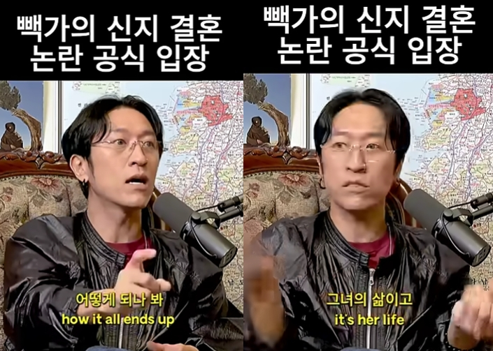 빽가는 4일 유튜브 채널 'SPNS TV'를 통해 공개된 '빽가의 신지 결혼 논란 공식 입장'라는 제목의 영상에 모습을 드러내며 "사람들이 신지한테 '결혼 하지마'라고 했는데 신지는 결혼을 결정했다. 그러니까 사람들이 '어, 너 내 말 안들었어? 그래 너 한번 어떻게 되나 보자' 그렇게 나오는게 너무 속상했다"라고 말했다.