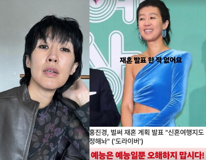 홍진경은 6일 자신의 재혼 관련 기사에 대해 "재혼 발표한 적 없어요"라며 "예능은 예능일 뿐 오해하지 맙시다"라고 전했다.