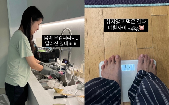 그는 "많이들 공감하시겠지만 저도 나이가 들다보니 팔, 다리보다는 배에만 살이 잔뜩 붙는 요상한 체질이 되어버렸다. 맛있게 먹은 것들이 내 뱃살로 자리잡기 전! 관리만 잘 해주시면 스트레스없이 먹방가능"이라며 자신만의 꿀팁을 덧붙였다. 특히 미자는 "몸무게도 원상복귀"라며 49.2kg이라고 인증샷도 공개했다.
