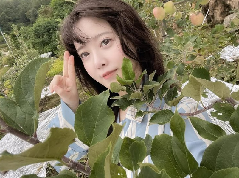 구혜선은 6일 자신의 계정에 "파자마 입고 엄빠네 사과밭에 왔어요. 열매를 주셔서 감사합니다. 즐거운 명절 되셔요"라는 글과 함께 사진을 게재했다.