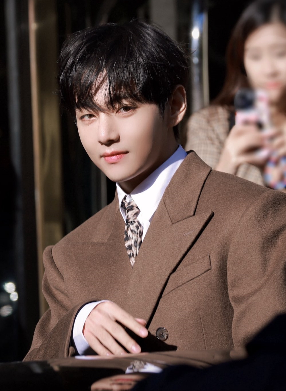 뷔는 5일 프랑스 파리의 외곽에 위치한 생 클루 국립공원에서 열린 '셀린느 2026 여름 컬렉션' 패션쇼에 참석했다. 이날 뷔는 클래식한 실루엣의 단정한 브라운색 롱코트에 호피무늬의 타이를 포인트로 매치해 감각적인 스타일링을 선보였다.