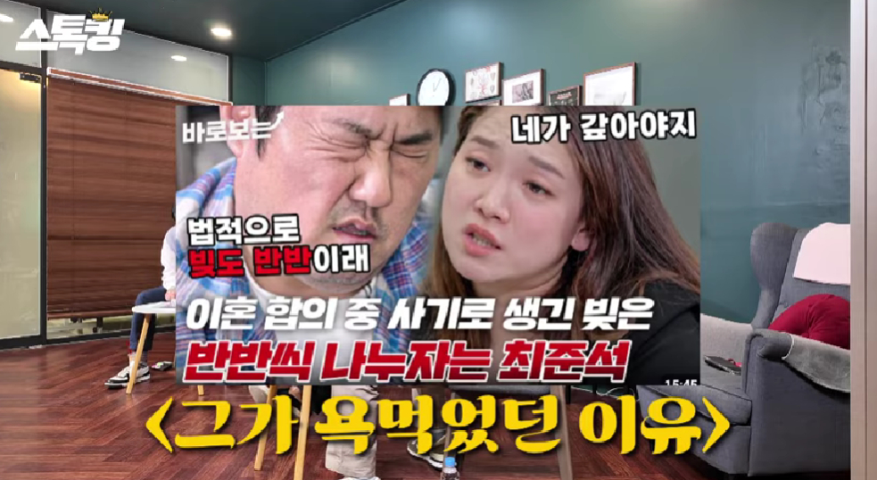 이날 최준석은 과거 아내와 함께 MBN '한번쯤 이혼할 결심'에 출연해 "이혼 합의 도중 사기로 생긴 빚은 반반씩 나누자"라고 발언해 논란을 빚은 것에 대해 해명했다.