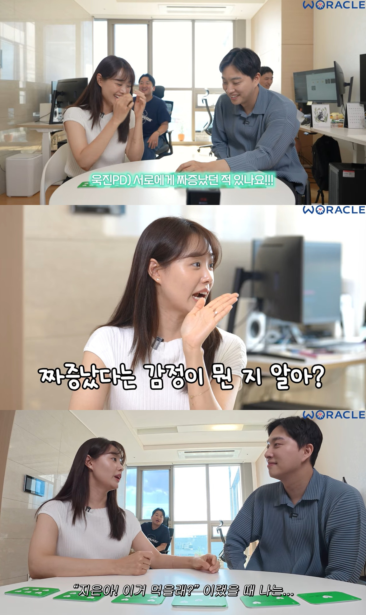 이어 "'지은아, 이거 뭐 먹을래?' 했을 때 '나중에 먹는다' 하고 세 번 정도 거절했는데 계속 물어볼 때 '왜 저럴까' 싶다"라며 "오빠가 생각하는 짜증은 뭐냐. 버럭 이냐"라고 말해 웃음을 자아냈다.