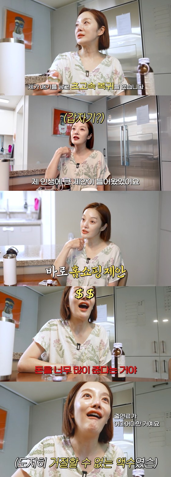 그는 "아직 준비가 안 돼서 '안 한다'고 했는데, 돈을 많이 준다더라. 출연료가 어마어마했다. 그래서 (홈쇼핑을) 했는데 원단에 대해 공부를 해야 하더라. 아이와도 시간을 보내야 하고 미치겠더라"고 지난해 여름 바빴던 나날을 떠올렸다.