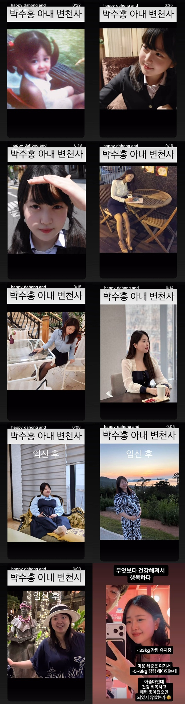 김다예가 공개한 사진에는 그의 어린 시절부터 학창시절, 성인이 된 후 임신 후의 모습이 고스란히 담겨 있었다. 김다예는 학창시절부터 미모를 자랑하다가 박수홍과 결혼하고 임신한 후에는 체중이 급격히 불어난 모습을 보였다.