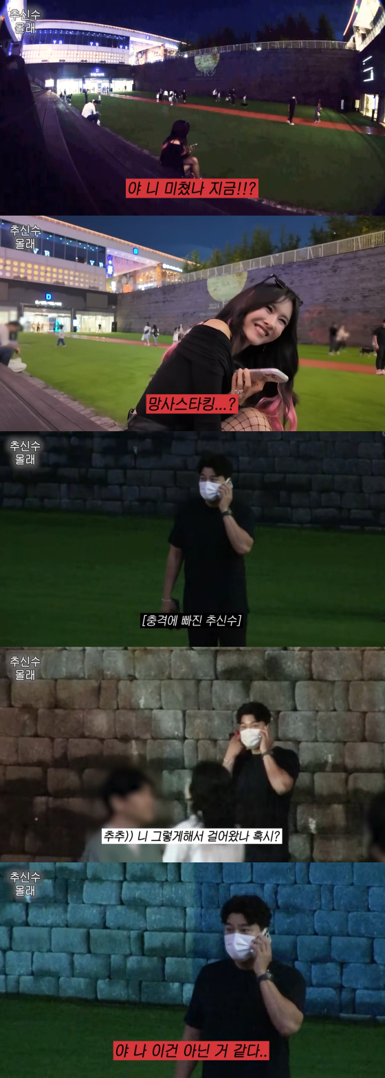 추신수는 이어 "야, 너 지금 뭐 하는 거냐. 망사 스타킹 뭐냐. 너 그렇게 해서 (여기까지) 걸어온 거냐. 미야(하원미 애칭) 미쳤냐"면서 놀란 마음을 쉽사리 진정시키지 못해 웃음을 자아냈다.
