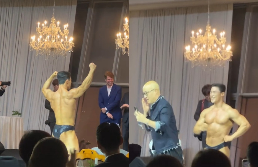 공개된 영상 속에는 결혼식 사회를 맡은 김숙, 다니엘 린데만의 모습은 물론, 보디빌더쇼에 난입한 홍석천의 모습이 담겨있어 웃음을 안긴다. 홍석천은 "깜짝이죠? 민망한 척"이라는 글을 남겼다.