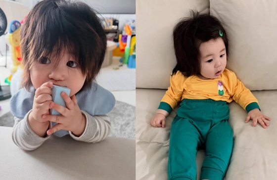 공개된 사진에는 앞머리가 길어 눈 아래까지 내려온 아들 하루 군의 모습이 담겼다.