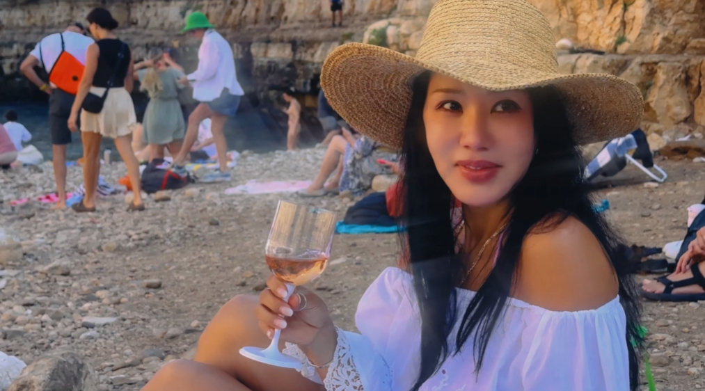 엄정화는 이탈리아 프로젝트 촬영을 마치고 폴리냐노 아마레를 찾아 모나킬레 해변에서 비키니로 갈아입고 수영을 즐겼다.