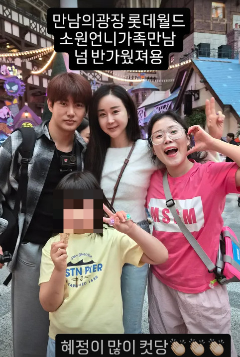 박슬기는 13일 자신의 인스타그램을 통해 "만남의 광장 롯데월드 소원언니 가족 만남. 너무 반가웠어요. 혜정이 많이 컸다"라는 글과 함께 사진을 게재했다.