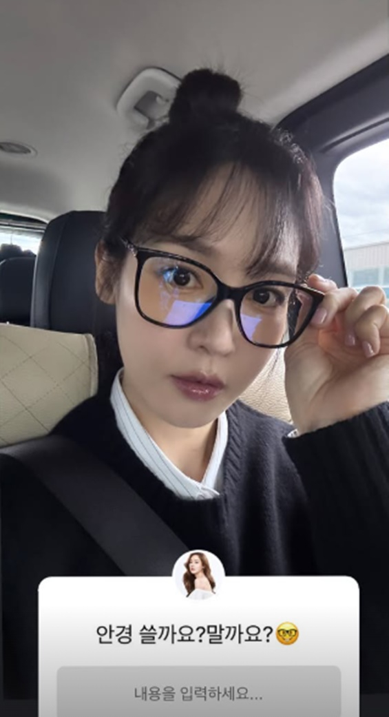 성유리는 안경 쓴 모습과 함께 "안경 쓸까요? 말까요?"라며 팬들에게 답변을 달라고 요청하며 소통하고 있다.