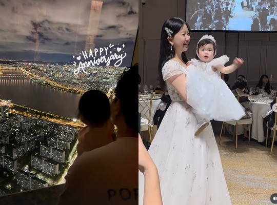 김다예는 이날 돌잔치 후 자신의 개인계정을 통해 아빠에게 안겨 시그니엘에서 야경을 보고 있는 딸 재이의 모습을 공개했다. 많은 것을 겪고, 극복한 두 사람이기에 사랑하는 딸과 함께 하는 돌잔치가 더 특별하게 느껴질 터. 이에 박수홍 부부를 향한 축하와 응원이 쏟아지고 있다.