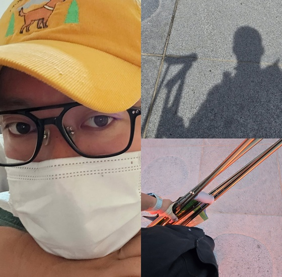 그가 새롭게 올린 사진엔 목발을 짚고 있는 그림자가 포착됐다.