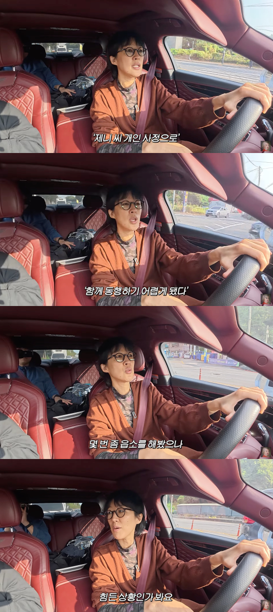 이에 대해 홍진경은 "솔직히 말씀드리면 제니 씨 사무실에서 '제니 씨 개인 사정으로 동행하기 어렵게 됐다'고 연락이 왔다"고 밝혔다.