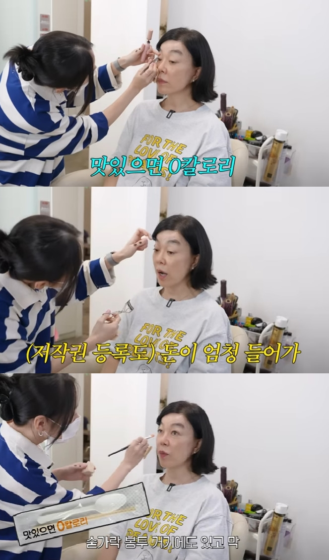 이어 "심사를 받고, 저작권 등록도 돈도 엄청나게 들어간다. 매니저한테 '등록하면 뭐가 좋아?'라고 했더니 사후 70년 동안 저작재산권이 보호된다고 하더라. 음식점 앞치마에도 쓰여 있고, 숟가락 봉투 같은 곳에도 쓰여있다. 거기에 일일이 가서 저작권 사용료를 받는 거라고 한다"면서 고개를 저었다.
