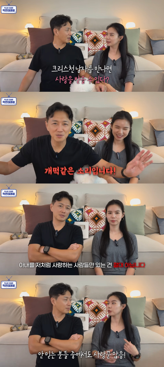 그는 "최수종, 차인표, 션 형님과 나의 공통점이 뭔지 아냐. 아내를 사랑하고 크리스천이라는 것"이라고 말했다.