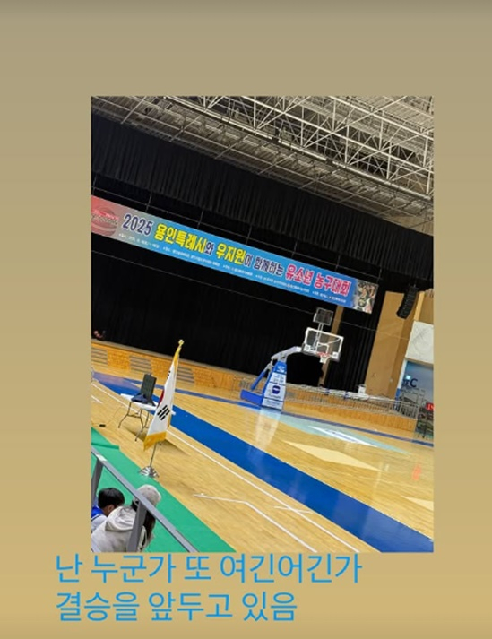 공개된 사진 속 이민정은 유소년 농구대회 결승을 기다리는 모습. 국제학교에 다니는 아들의 농구 경기를 관람하기 위해 농구장을 찾은 것으로 보인다.