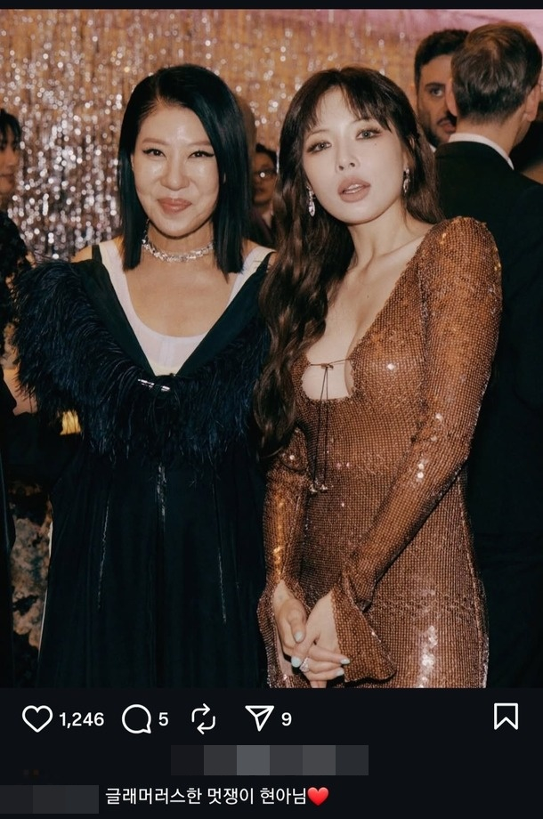 이 편집장은 2023년 진행된 유방암 인식 향상 캠페인 현장에서 현아와 함께한 사진을 올리며 "글래머러스한 멋쟁이 현아님"이란 글을 적었다.